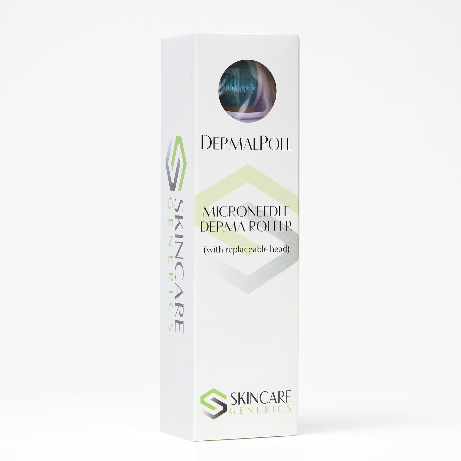 DERMALROLL is a microneedle derma roller kit with replaceable head containing: